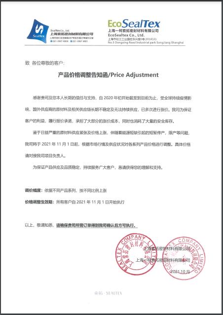 產(chǎn)品價(jià)格調整函/Price Adjustment